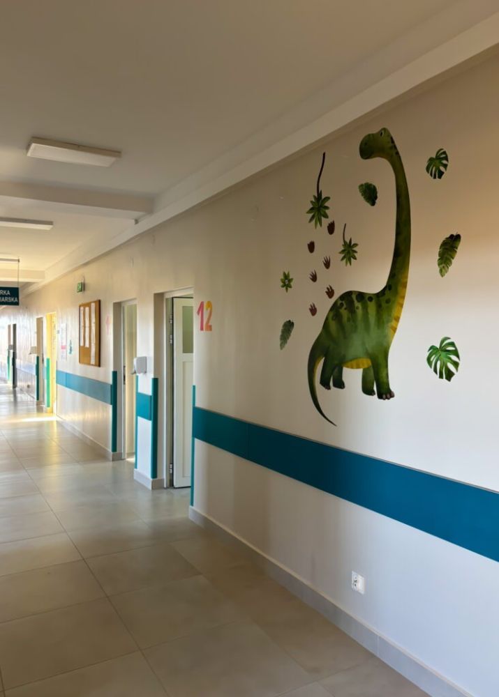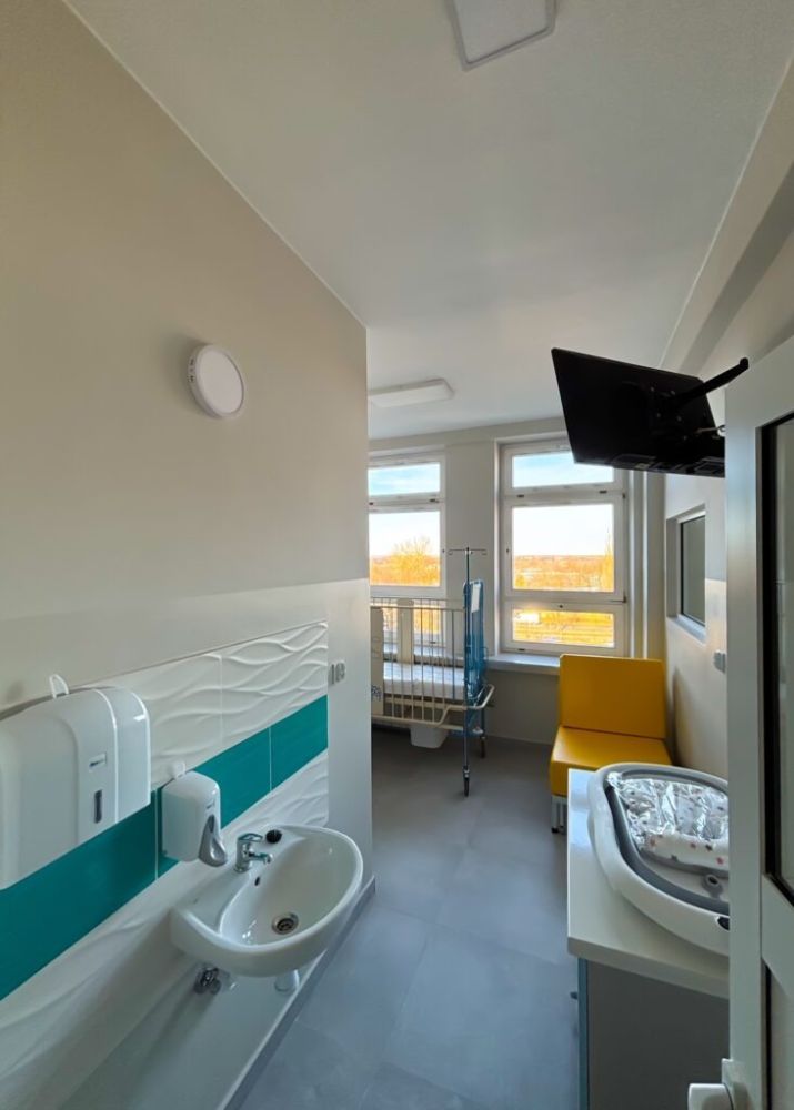 Zakres prac obejmował kompleksową modernizację oddziału – wymienione zostały płytki na ścianach oraz podłodze, sufity, okna, drzwi, a także łazienki, które teraz spełniają najwyższe standardy sanitarne i funkcjonalne. Dzięki tym zmianom udało się stworzyć przestrzeń, która nie tylko poprawia warunki hospitalizacji, ale także sprzyja procesowi leczenia i rekonwalescencji najmłodszych pacjentów.